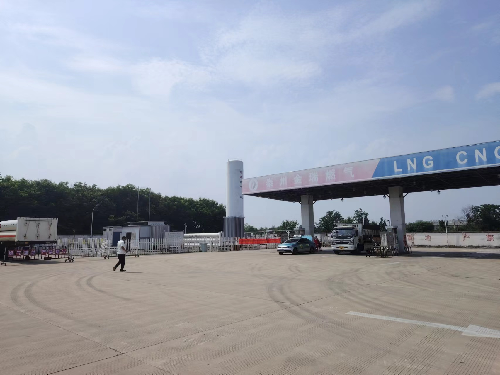 项目基本情况 | 泰州市金瑞天然气有限公司位于姜堰区天目山街道朱云村十一组101号。基本呈长方形。S229省道西侧,加气站西侧为农田,北侧为农田,东侧54.5m外为一杆高12m的架空电力线,62.9m外为S229省道,南侧为停车场,项目周边无学校、医院、娱乐场所等人口密集的公共场所和其他重要设施。 | |||