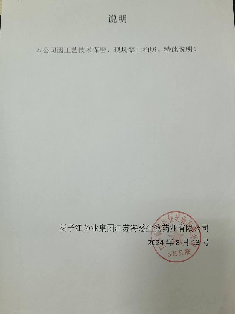 | 受检单位名称 | 扬子江药业集团江苏海慈生物药业有限公司 | ||||||