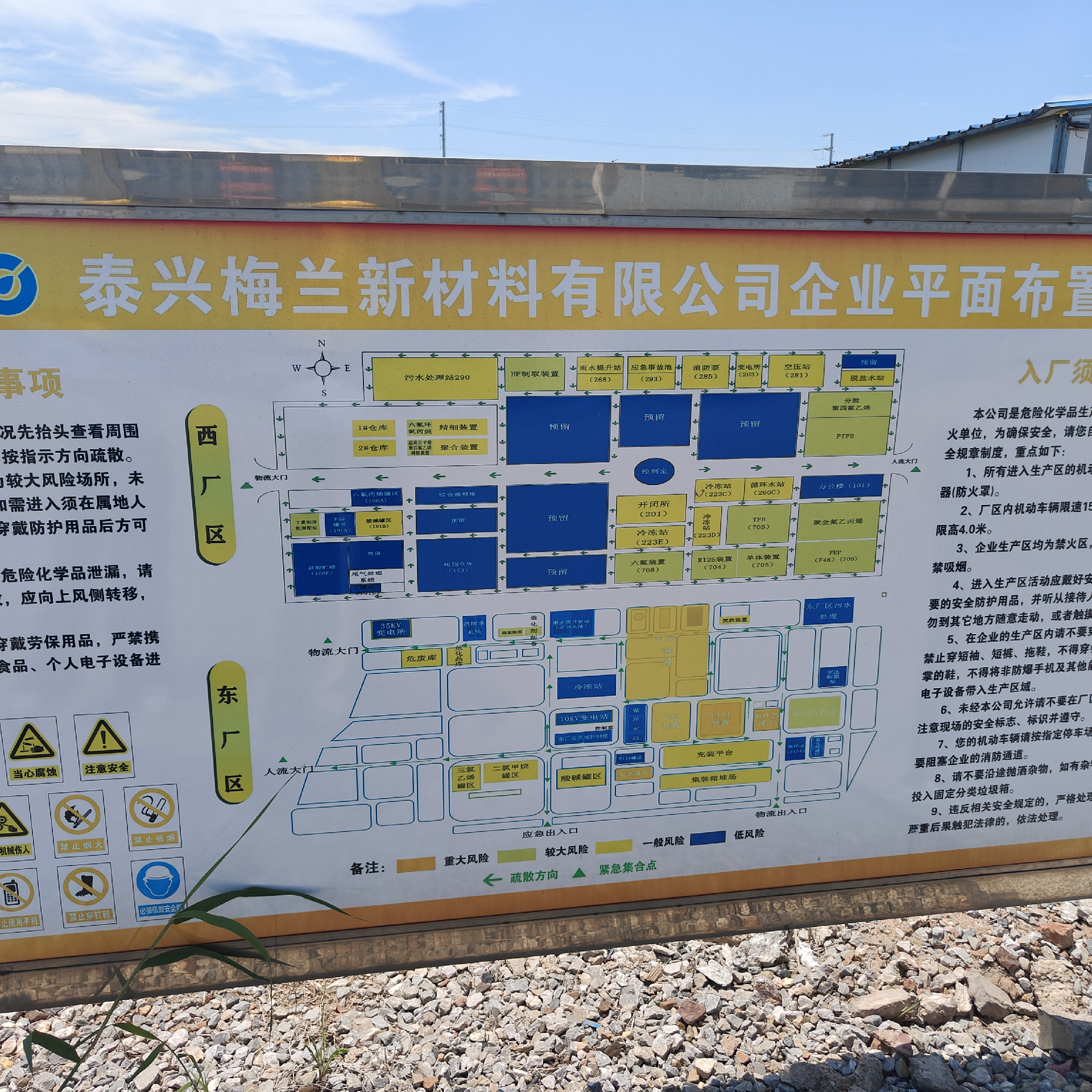 项目基本情况 | 泰兴梅兰新材料有限公司成立于2010年11月26日,注册资本56014.341万元,统一社会信用代码:913212835653083520,地址位于泰兴经济开发区闸北路3号,是梅兰集团下属独立法人公司。企业现拥有固定资产7亿元,现有员工707余人,其中各类专业技术人员近百人,占地面积900亩。公司注册资本56014.341万元。法定代表人:陈明,主要负责人:陈明,安全总监:曹马林;已设置了专职安全管理机构-安全环保处,专职安全管理员15人,其中包括6名注册安全工程师,企业的安全风险等级为红色。 物流管道输送项目于2024年9月6日取得泰兴市数据局《江苏省投资项目备案证》(备案证号:泰数据备[2024]688号),建设性质:新建,项目总投资:1200万元。主要建设内容:利用泰兴恒瑞供热管理有限公司、泰兴梅兰新材料有限公司东厂区和泰兴梅兰新材料有限公司西厂区的部分管廊新建硫酸、盐酸、二氯甲烷、三氯甲烷、氯化钙等5种物料外管输送项目,分别接至江苏三木物流有限公司和泰兴市港口集团有限公司原瑞和码头,形成新增994000吨/年物料外管输送能力,共10根管道。其中2根(盐酸、硫酸)备用,输送物料:98%硫酸、105%发烟硫酸、三氯甲烷、二氯甲烷、 30%氯化钙、31%盐酸、31%精致盐酸、36%盐酸。 | |||