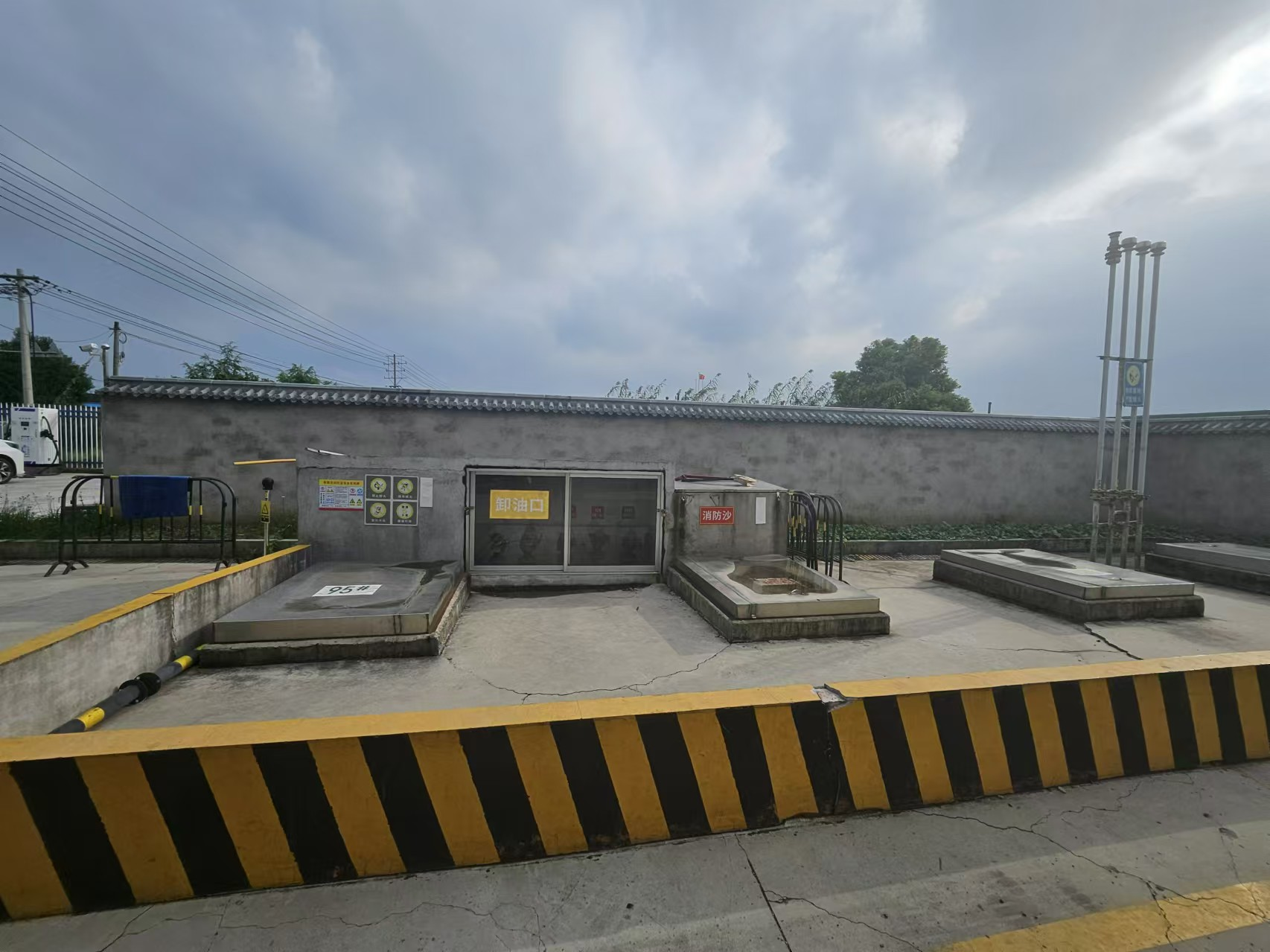 项目基本情况 | 泰兴市南新加油站成立于2005年11月14日,经营场所位于泰兴市新街镇张吉村,占地面积为789㎡,坐西朝东。主要从事危险化学品汽油、柴油零售经营。加油站共6人,其中主要负责人为吉林春,安全员为吉伟,加油工肖立清、鞠建兰、李小云、吉美凤。 泰兴市南新加油站于2022年1月11日取得泰兴市应急管理局核发的《危险化学品经营许可证》[编号:苏(泰)危化经字71472],经营许可范围:汽油、柴油[闭杯闪点≤60℃],许可证有效期自2022年1月11日至2025年1月10日。 该站加油区现有4台双枪单油品加油机,储罐区现有4只埋地双层油罐::V104:95#汽油罐(单罐容积20m3)、V103:92#汽油罐(单罐容积20m3)、V102:92#汽油罐(单罐容积30m3)、V101:0#柴油罐(单罐容积30m3);V汽总=70m3,V柴总=30m3,V总=85m3(柴油折半计算);根据《汽车加油加气加氢站技术标准》(GB50156-2021)中表3.0.9加油站的等级划分规定,当V总≤90m3,V柴单≤50m3,V汽单≤30m3为三级加油站,故该站为三级加油站。 | |||